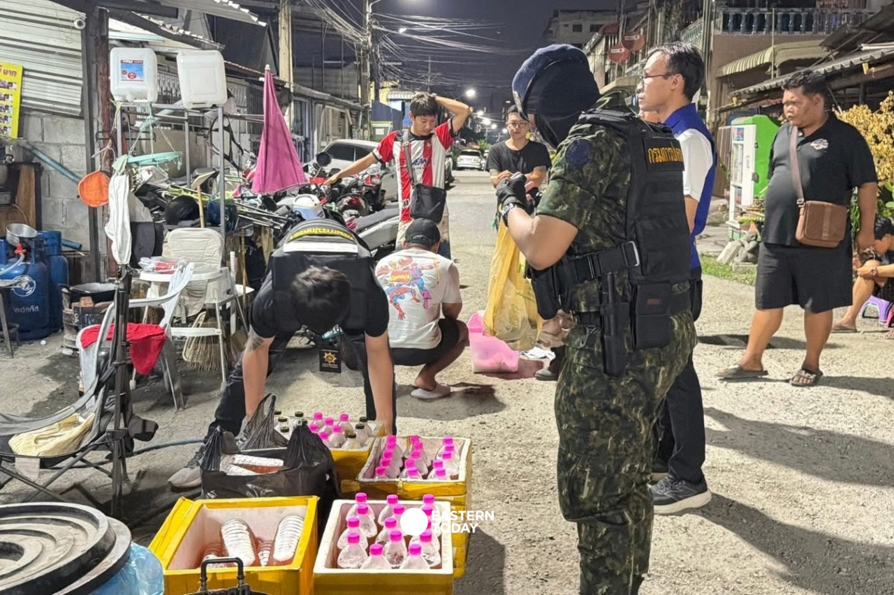 ชลบุรี – (5 มกราคม 2569) ฝ่ายปกครองอำเภอบางละมุง เปิดปฏิบัติการกวาดล้างแหล่งมั่วสุมยาเสพติด บุกรวบเจ้าของร้านขายของชำที่ใช้กิจการบังหน้า ลักลอบต้มและจำหน่ายน้ำกระท่อมสูตร 4×100 ให้กับกลุ่มวัยรุ่นในพื้นที่ หลังได้รับการร้องเรียนจากชาวบ้านที่ได้รับความเดือดร้อน