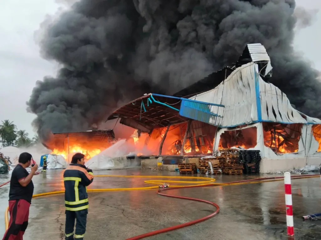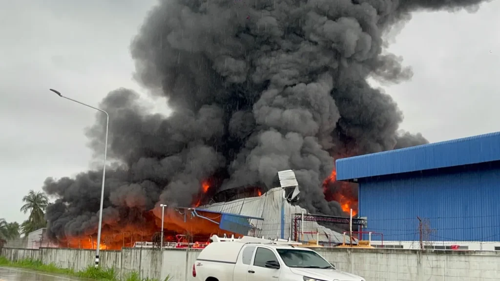 ฟ้าผ่าโรงงานโฟมศรีราชา! ไฟลุกท่วม-ระเบิดสนั่น ควันดำทะมื่นทั่วฟ้า